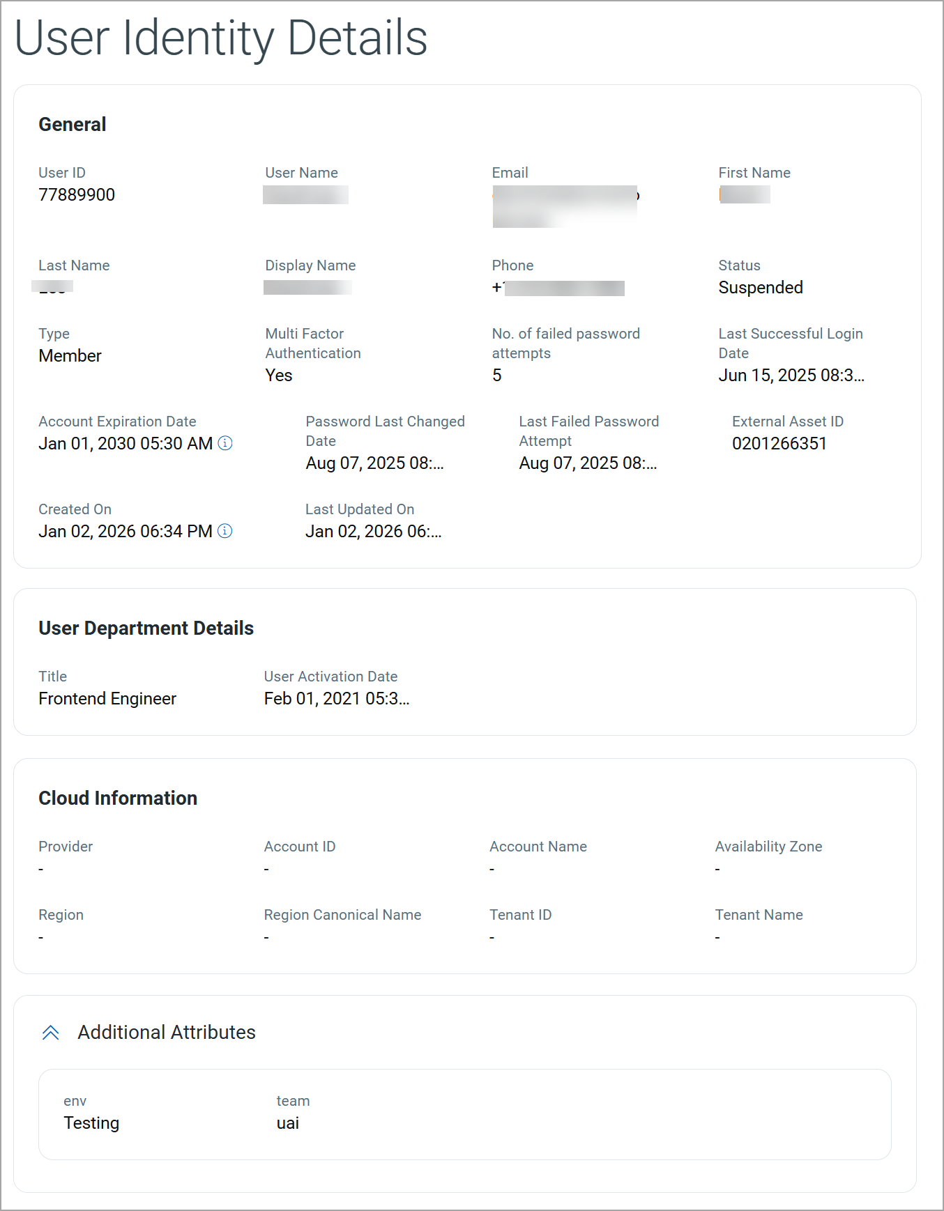 | Last Updated On | Date and time when the user identity details were last updated. |