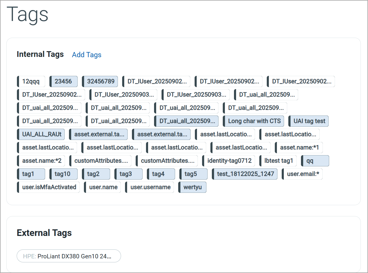 Internal Tags are system-generated or user-defined tags. You can add a new tag by clicking Add Tags.