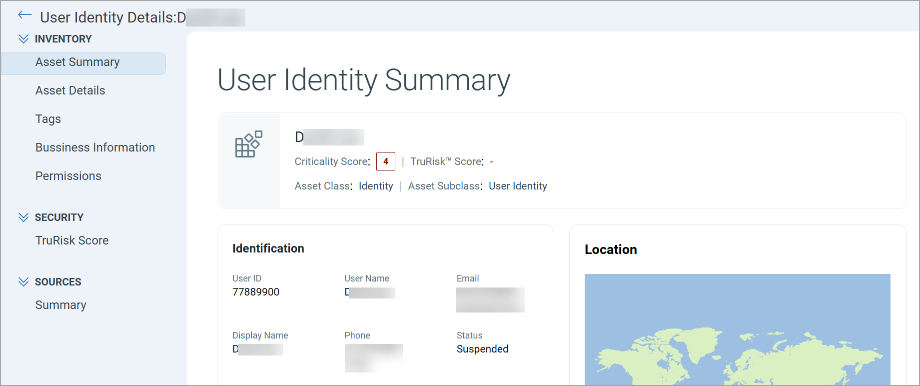 | Criticality Score | Asset Criticality Score (ACS) assigned to the user. |