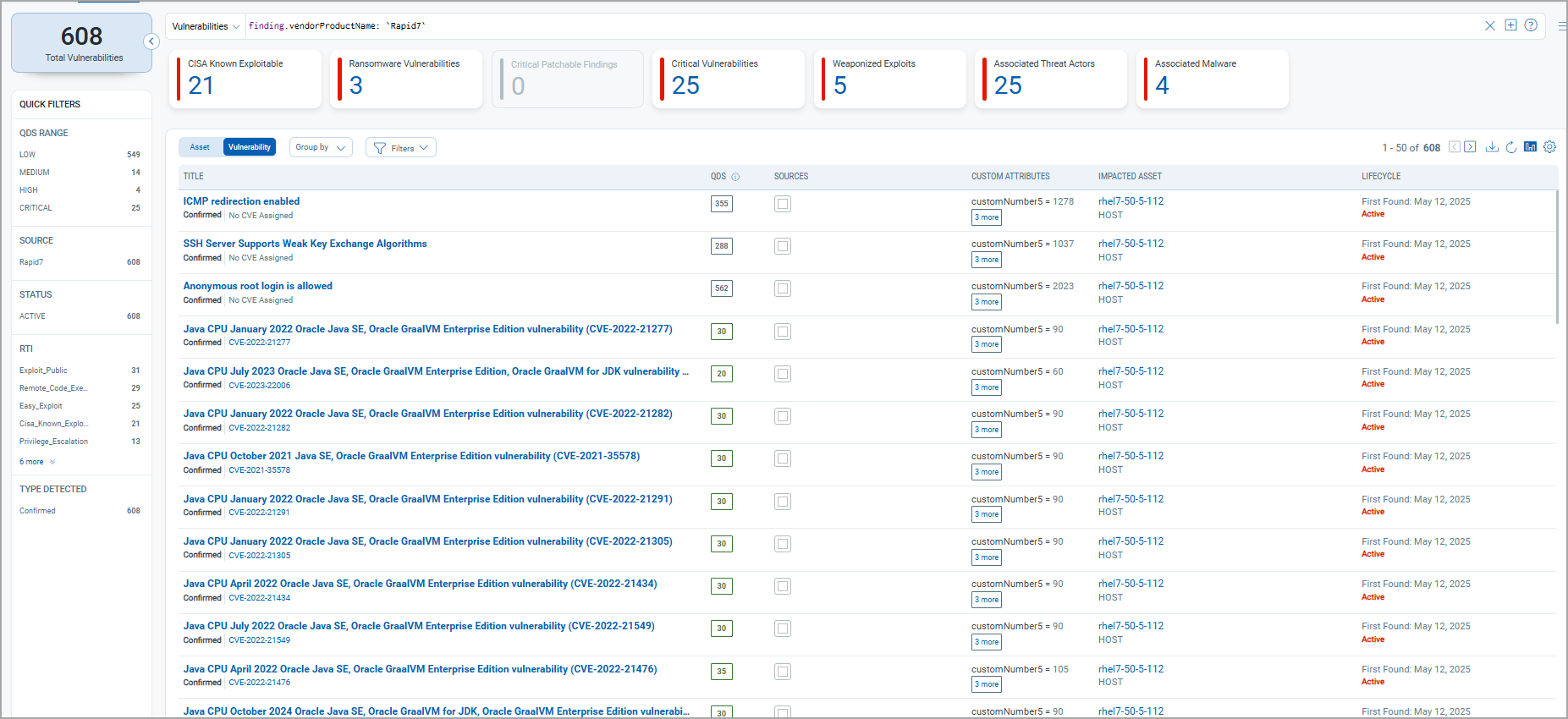 The Rapid7 connector ingests assets and vulnerabilities from Rapid7 InsightVM to Qualys ETM for unified risk analysis and prioritization.