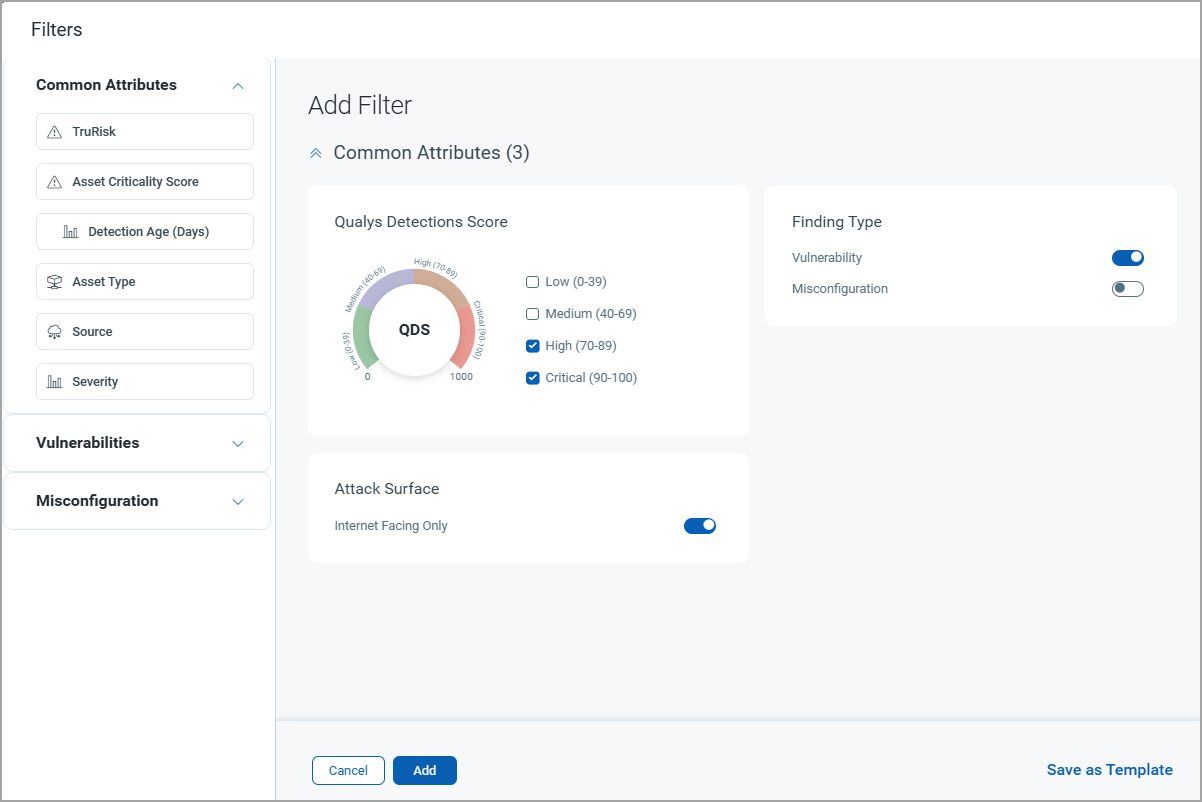 - Common Attributes: These filters are common across both the finding types (vulnerabilities and misconfigurations)