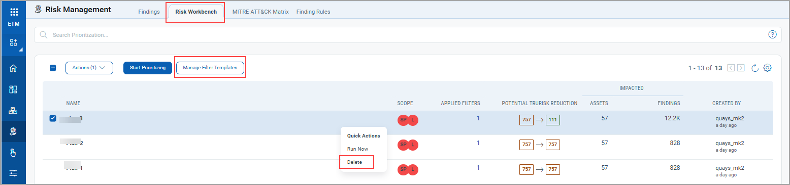 There was a discrepancy in the Top Risk Factors Count. Previously, the Top Risk Factors displayed on the ETM Home page displayed a different count compared to the Overview page in the Findings tab. The discrepancy occurred because the Home page displayed counts for findings, while the detail page also included total assets. To avoid this confusion, we have improved the UI by introducing a new field: