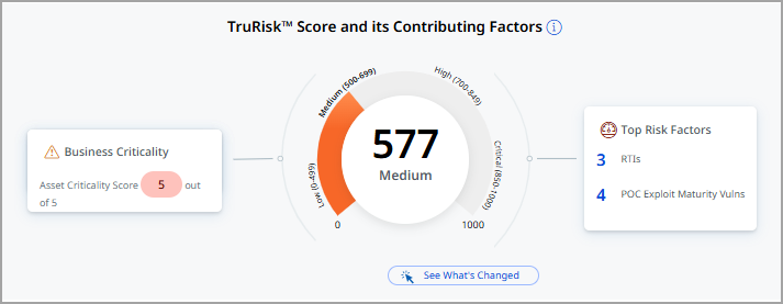The following is an example of the new color codes representing different levels of criticality and TruRisk™ Score: