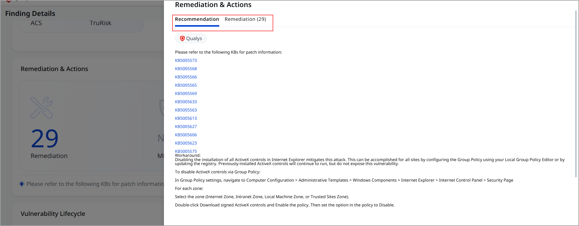 - Only the Remediation tab is displayed.