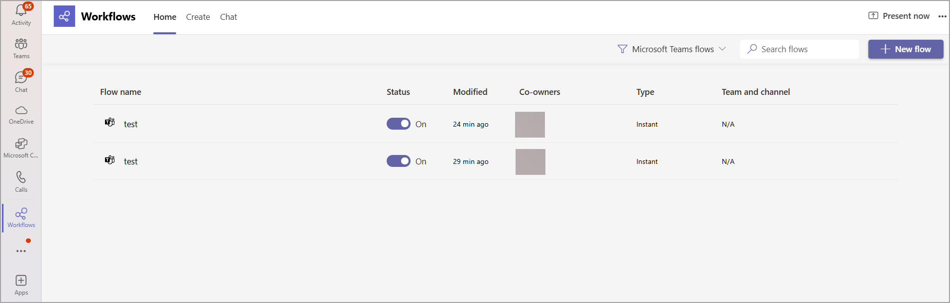 You can see the created workflow on the Home tab. Click the Flow name to see details.