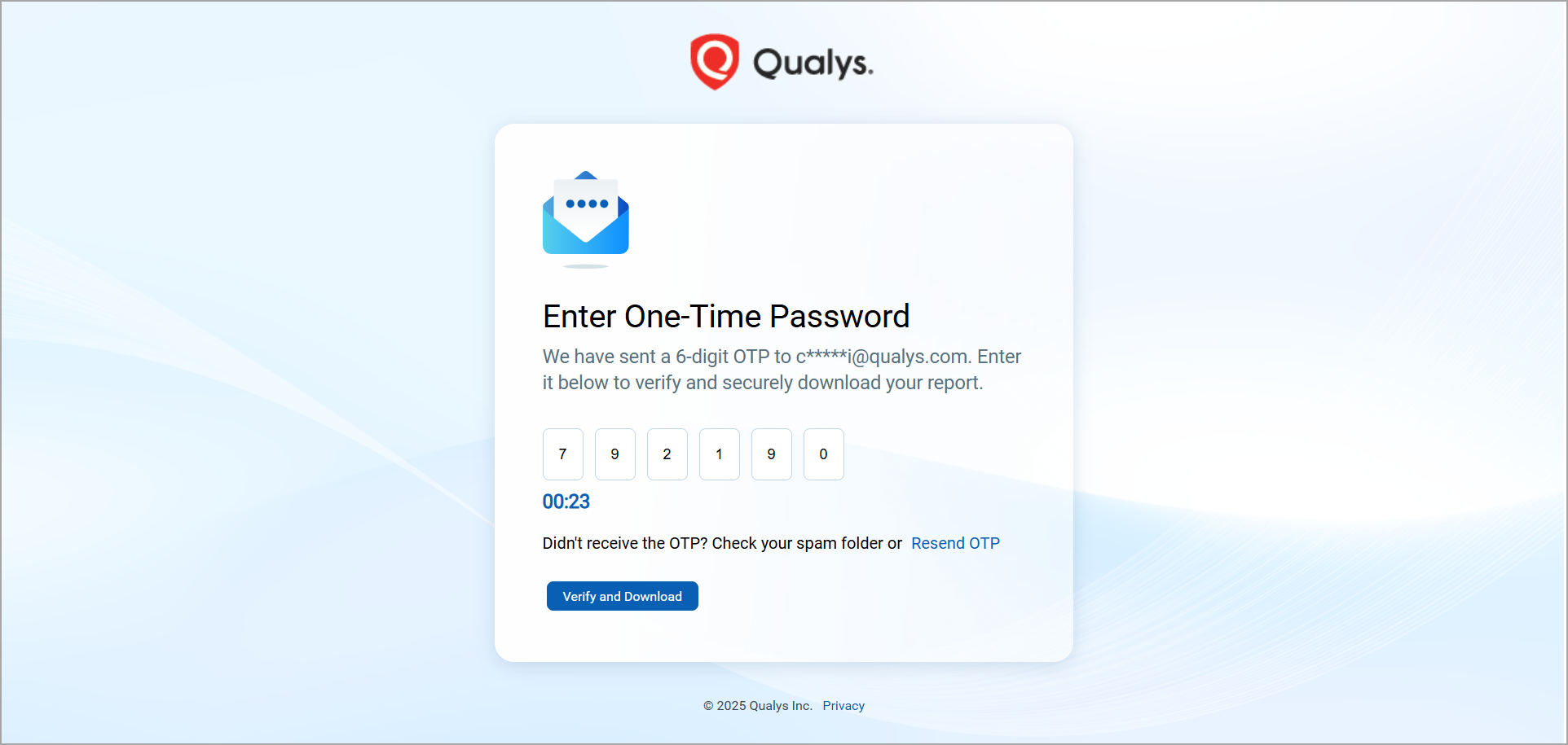 If the OTP is valid, the report download starts automatically. If necessary, click Resend OTP to generate a new OTP.