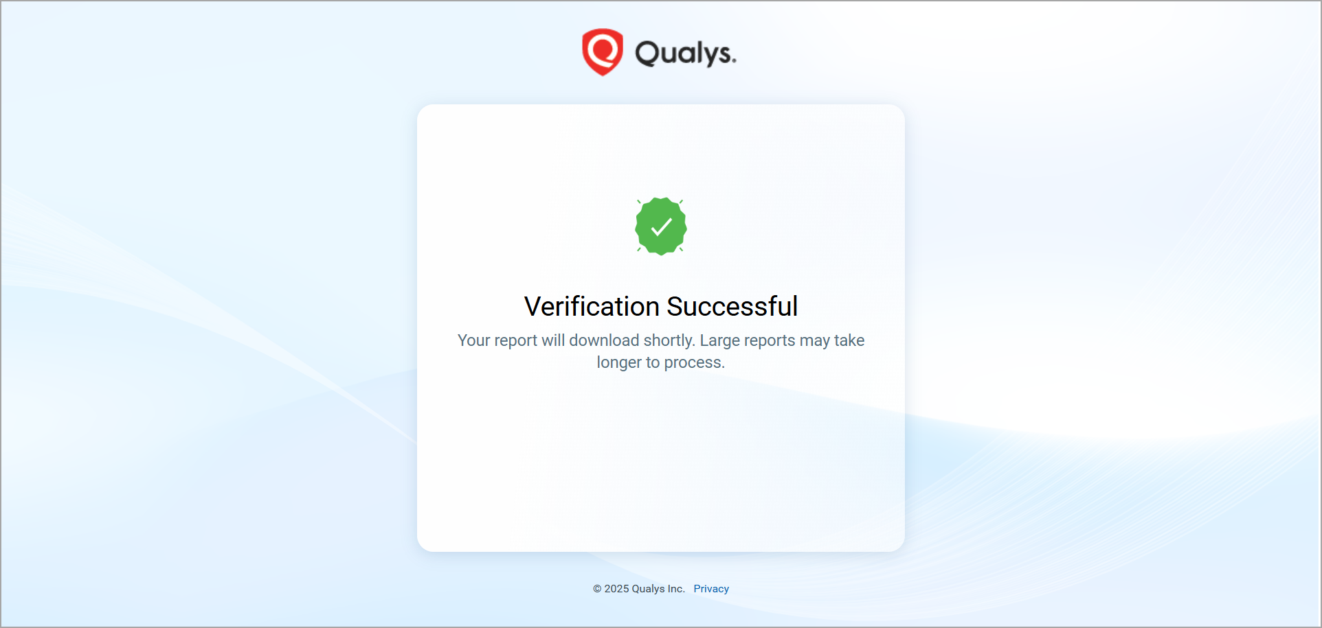 After generating the report, Qualys sends an email notification containing a download link. Both the report creator and all recipients can use this link to download reports that are larger than 5 MB.