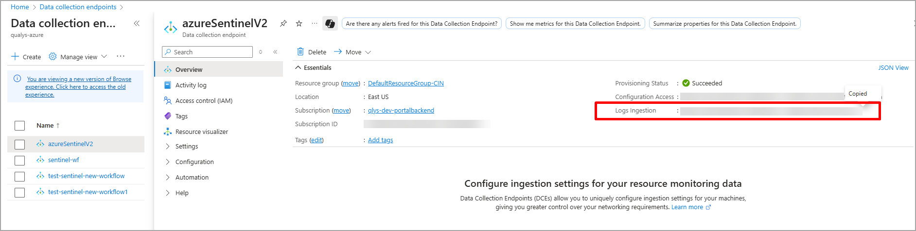- Navigate to Azure Monitor > Data Collection Endpoints (DCE).