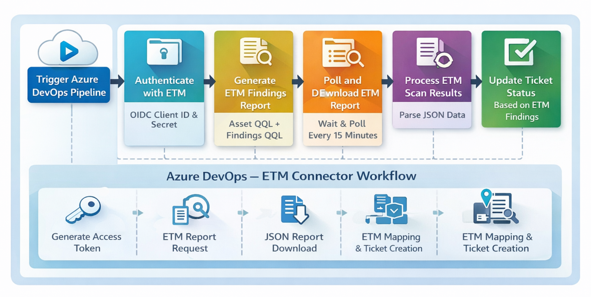 Automatic Ticket Creation: Automatically creates Azure DevOps work items based on ETM detections to streamline tracking and remediation.