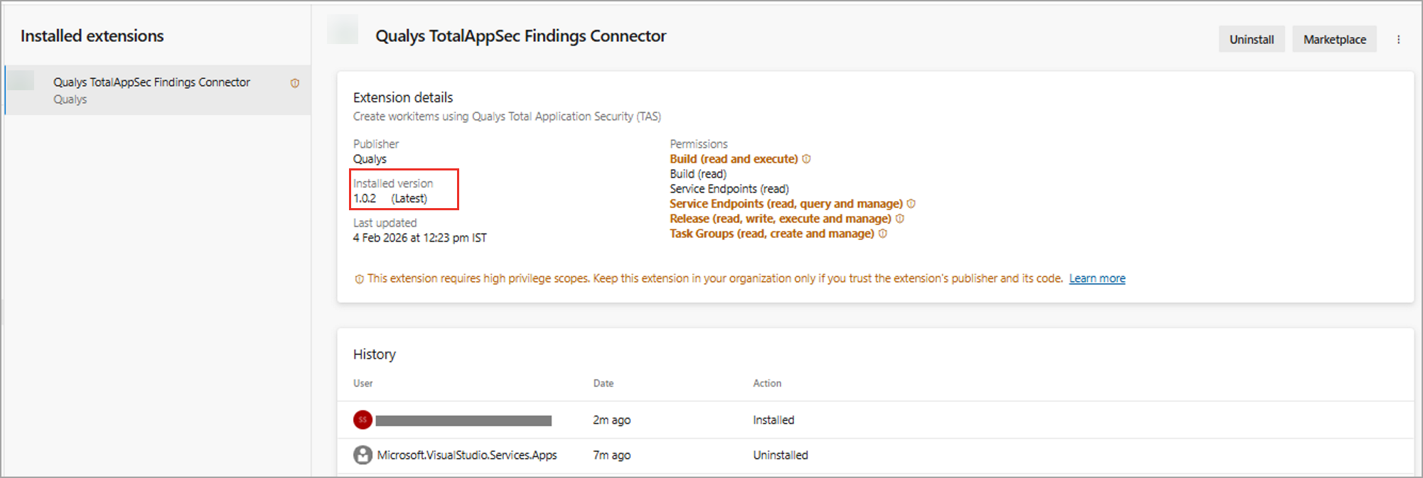 Qualys TotalAppSec Finding connector for Azure DevOps gets upgraded automatically when a new version is released in the marketplace, as per the Azure DevOps design.