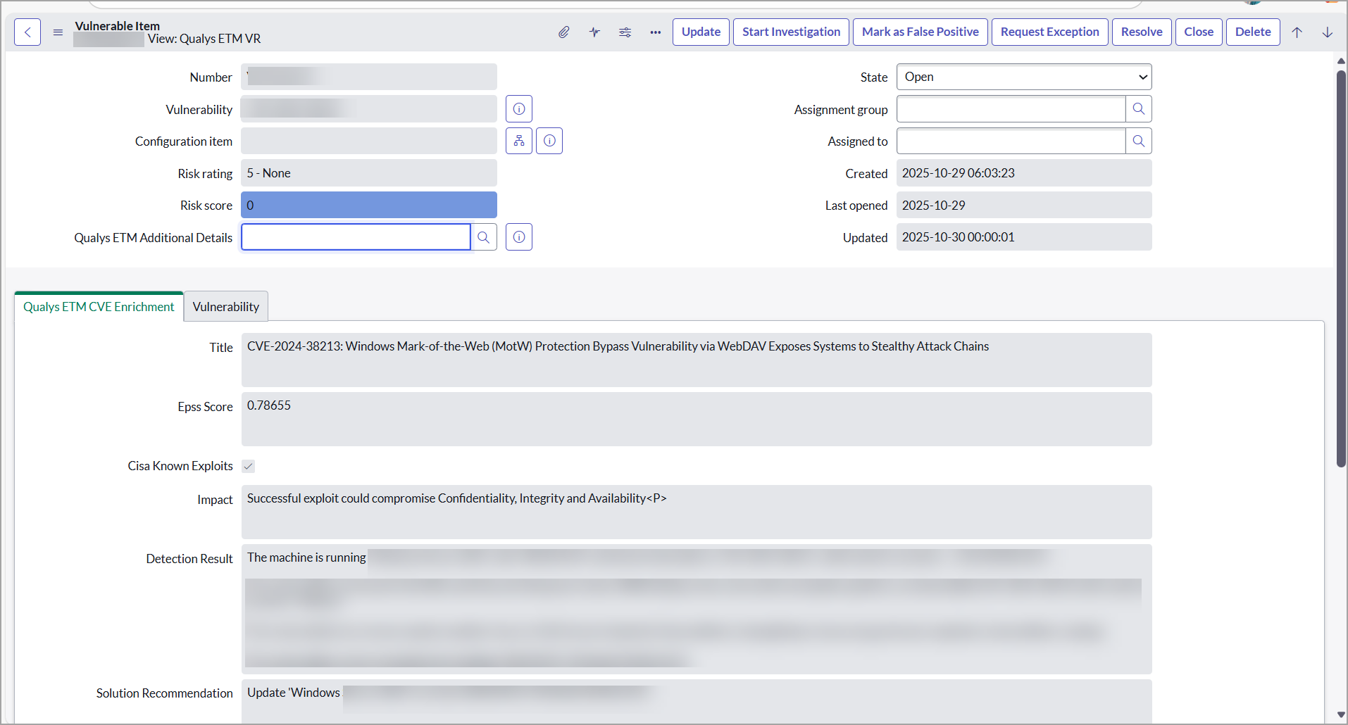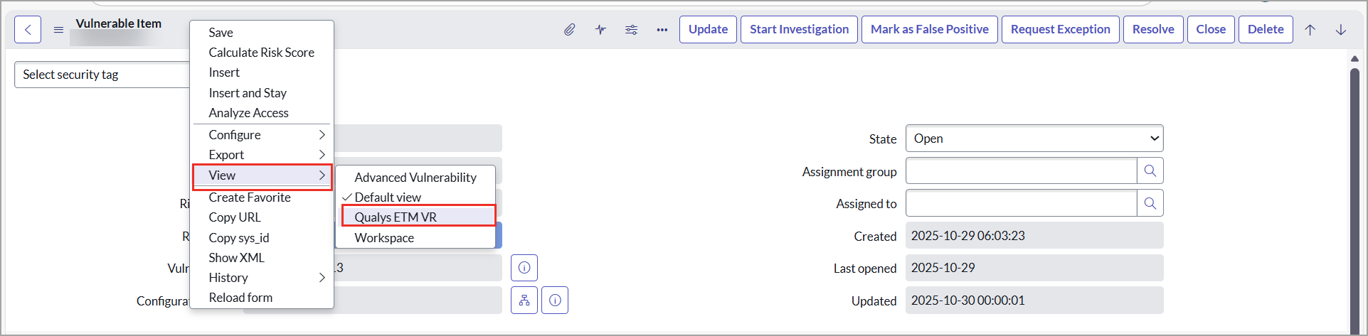 You can view ETM Vulnerable Item details fetched by the Qualys ETM VR integration app.