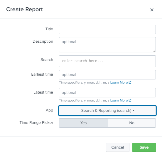 In the App field, select the Search & Reporting (search) to generate the KB CSV file under the directory SPLUNK_HOME/etc/apps/search/lookups/.