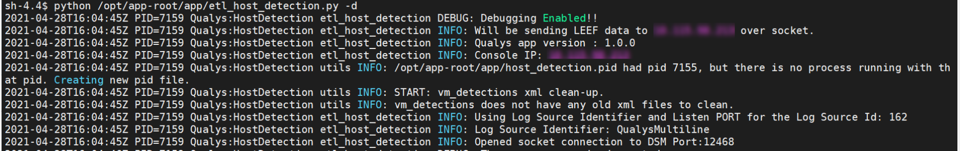 Making Request - https://qualysapi.qualys.com/msp/about.php with PARAM: {} 2020-01-16T10:19:58Z PID=421 Qualys:HostDetection client ERROR: Error during request to https://qualysapi.qualys.com/msp/about.php:<urlopen error [Errno 111] Connection refused>
