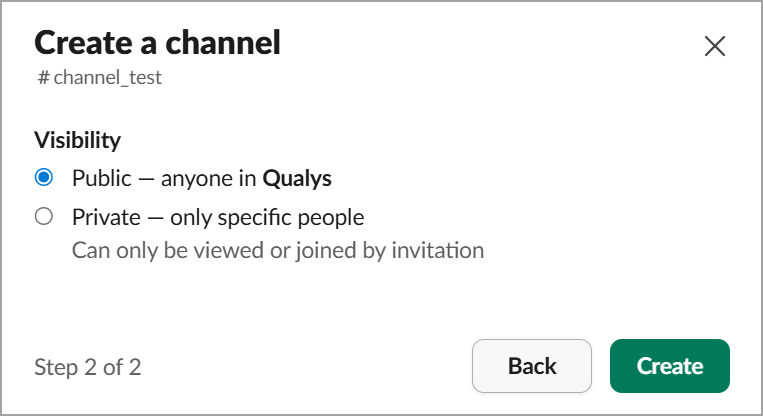 Select the type of visibility for the channel - Public or Private, and click Create.