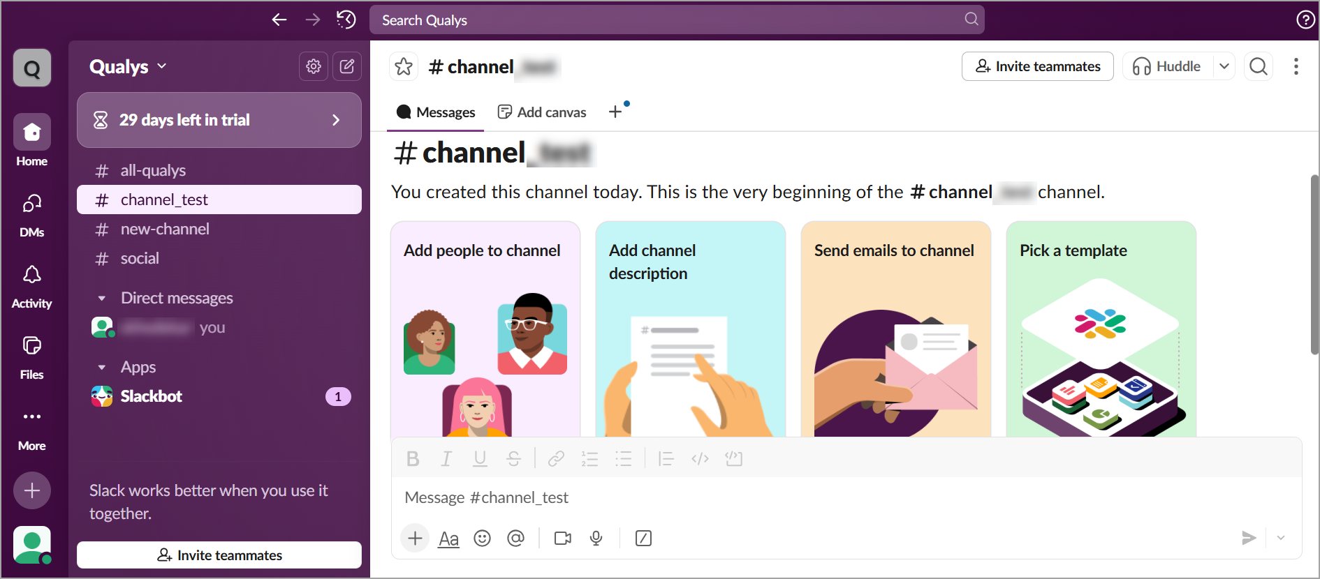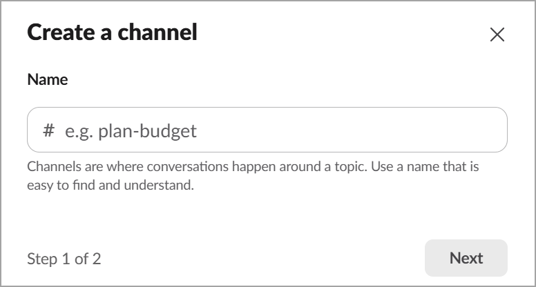 Before creating a Channel, you must have a Workspace created. For steps to create a Workspace, refer to Create a Slack Workspace page.