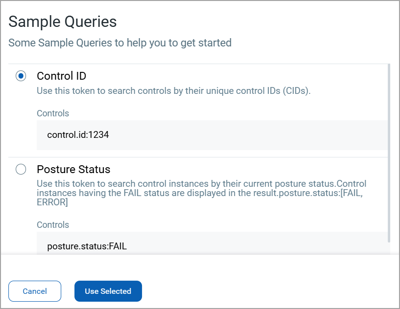Alternatively, you can click Sample Queries to select from the predefined queries. The following screenshot is an example of Sample Queries:
