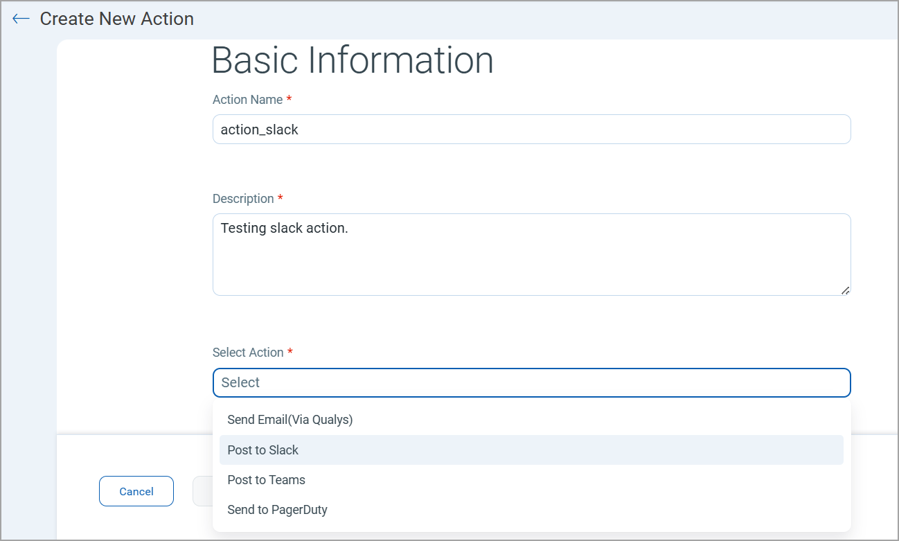 To send an alert, you need to create a new action for which you want to receive an alert once the created rule is triggered. Alerts are initiated when events matching a condition are detected, and the action you configure for the condition match is triggered. For sending alerts on the Slack, you need to select Post to Slack as an action.