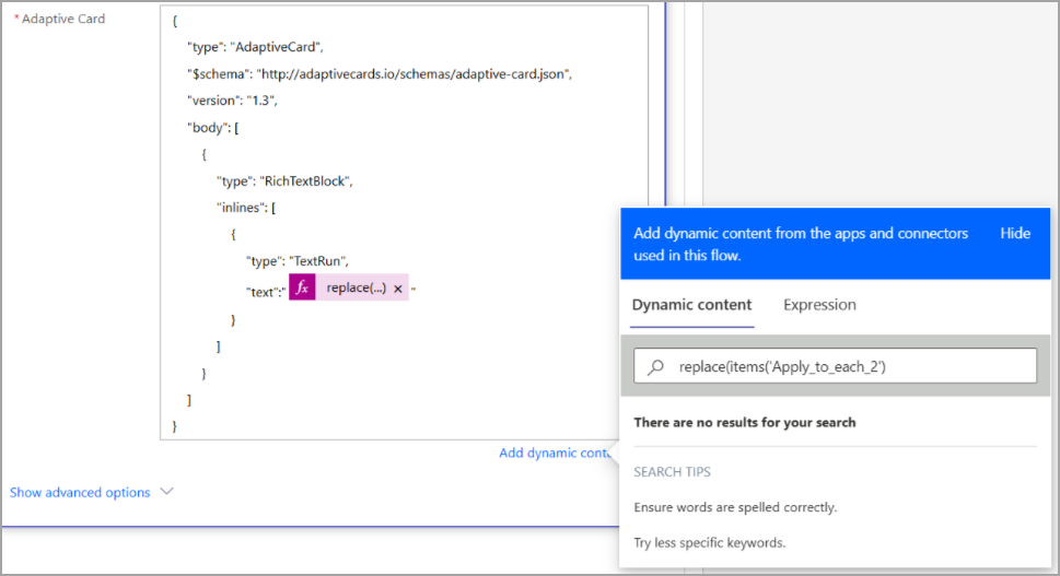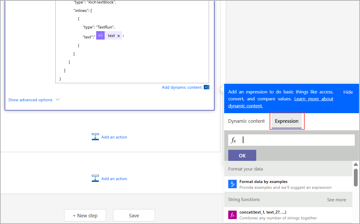 (cross) beside the text. - Click Expression from the Add Dynamic Content.