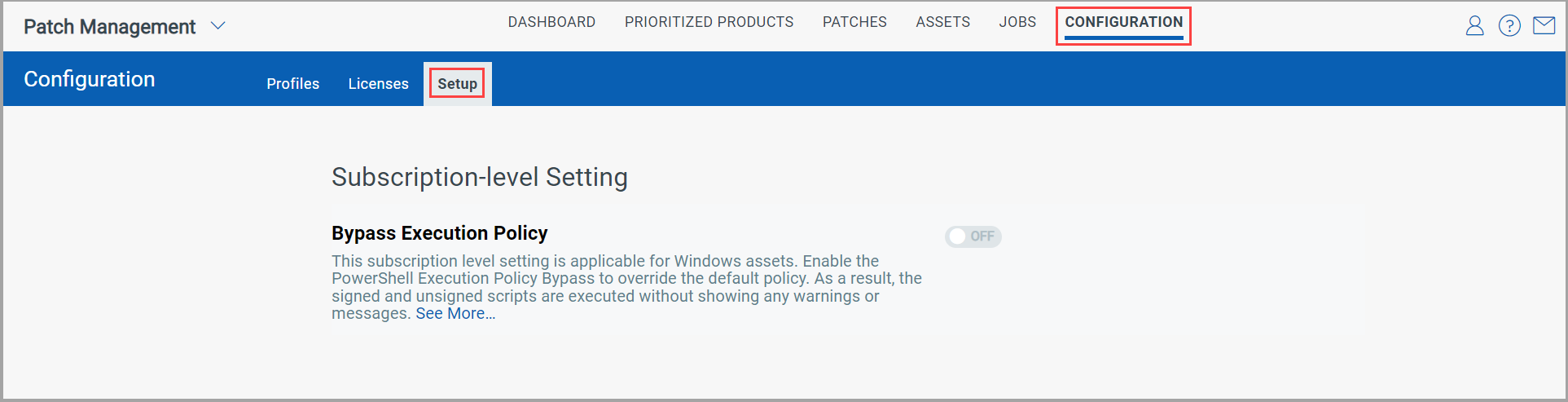 2. Turn the Bypass Execution Policy toggle to OFF. A confirmation message is shown. Once you provide your confirmation to disable the Bypass Execution policy by clicking Yes, the Bypass Execution policy is disabled.