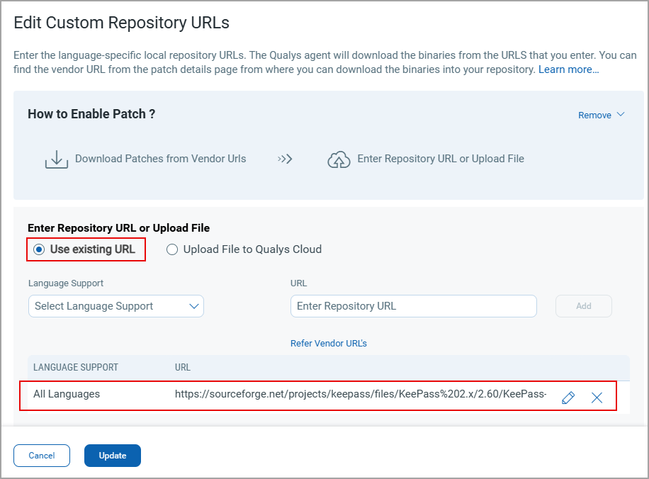 icon next to the vendor URL. Refer to the Add Patch Process shown in the following screen capture. You can hide the Add Patch Process representation by clicking Remove.