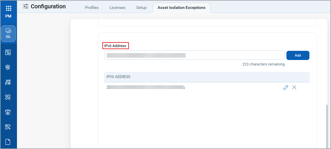 You can also add the IPv6 address through Configurations > Asset Isolation Exceptions > Allowed IPs.