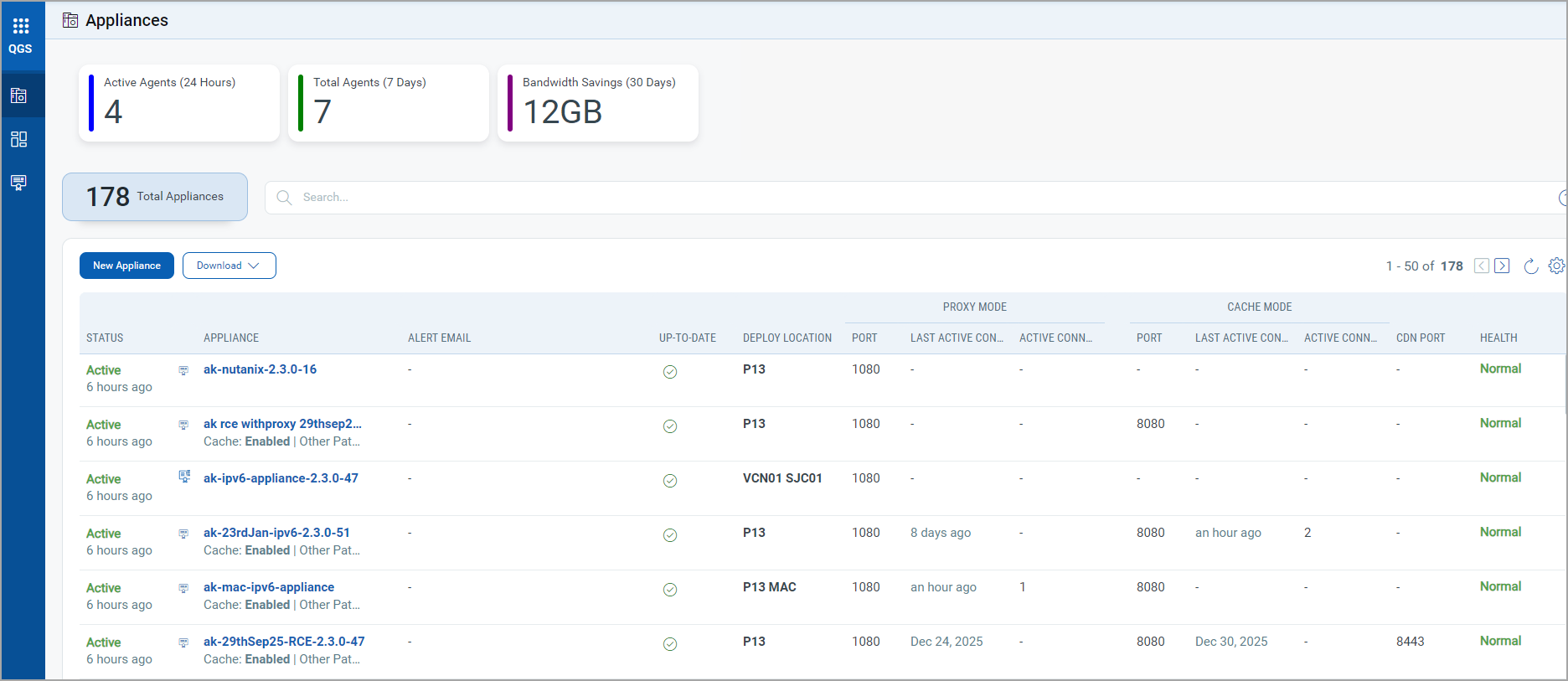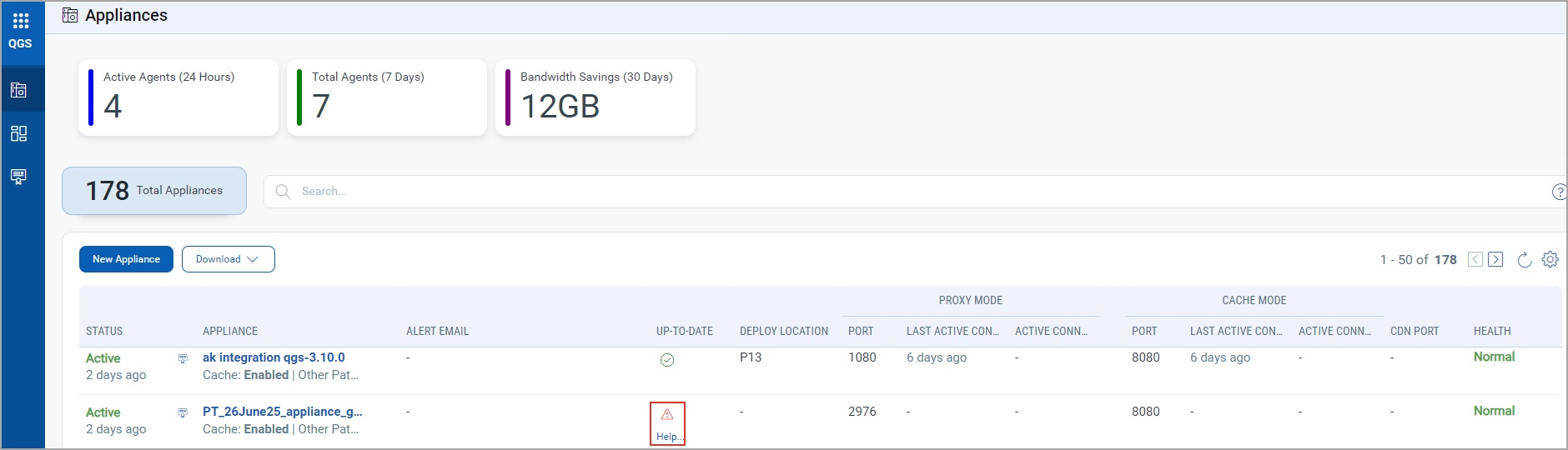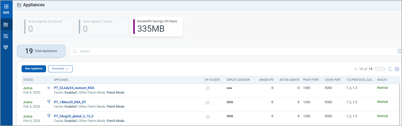 - Last Active Connection: Shows when the last IP was connected to the QGS appliance in Cache/Patch mode.
