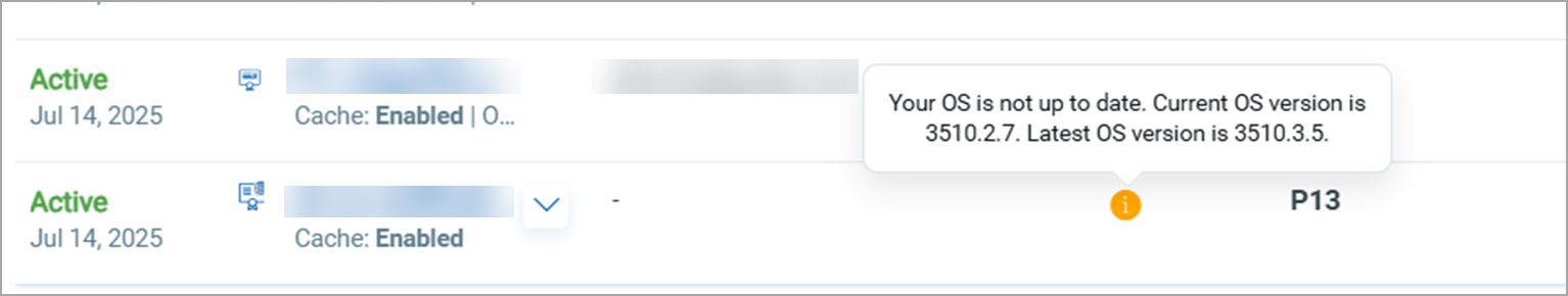 Displayed when the appliance OS version is outdated.