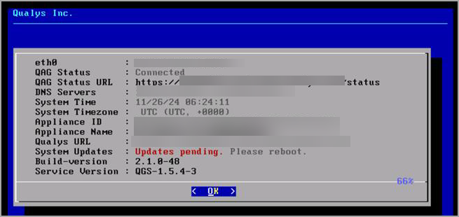Access the serial console (QGS TextUI) and open the INFO screen.- If the OS is on CoreOS, redeploy the appliance.