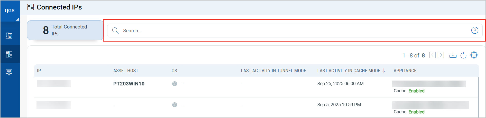 - Detailed agent information such as Agent IP, Hostname , Operating system, Last Activity via Proxy Port, Last Activity via Proxy Port, QGS Appliance, Agent UUID.