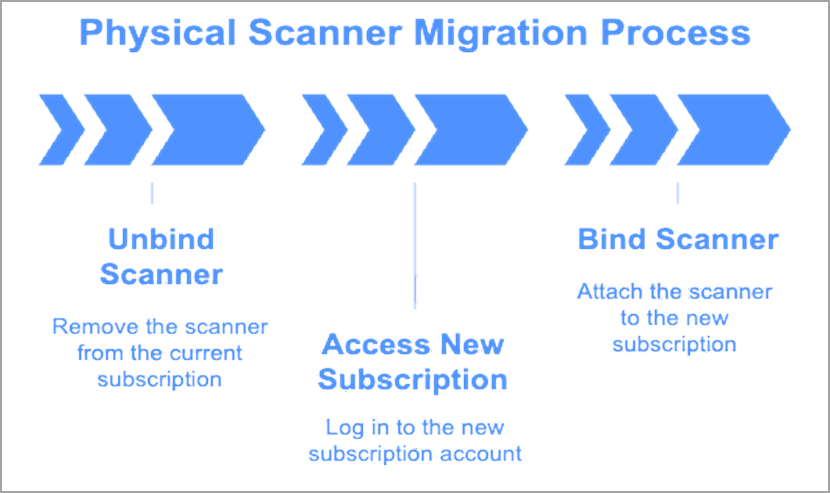 Migrating a physical scanner within the same POD to different subscriptions or accounts is seamless. To migrate the physical scanner, it has to be unbound from its current subscription and bound to the new one.