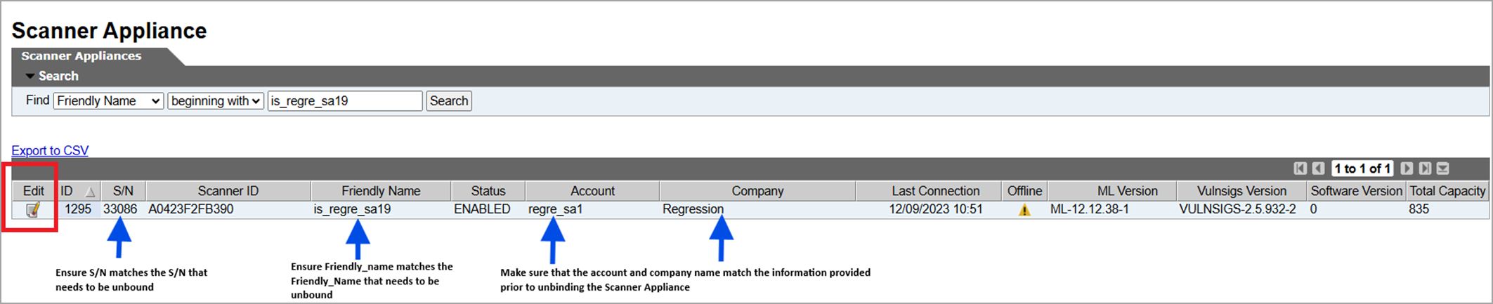 For more details, refer to the section Replace Scanner Appliance in the VM Online Help and the Replace Scanner Appliance API section in the VM API User Guide.
