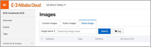 - Go to Elastic Compute Service > Instances & Images > Images > Share Image.