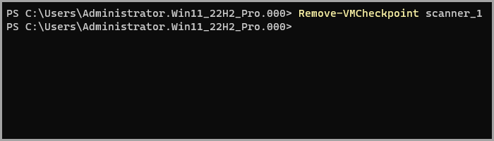 | Remove-VMCheckpoint -VMName <virtual machine name> | Deletes the checkpoints for Qualys Scanner VM |