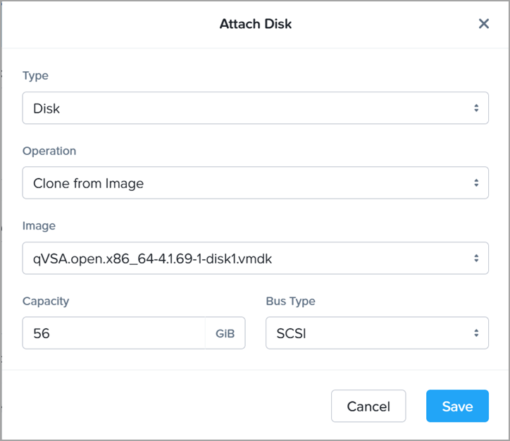 - Image: select the uploaded Qualys Virtual Scanner Appliance image. You can choose either vmdk or qcow2 file format.