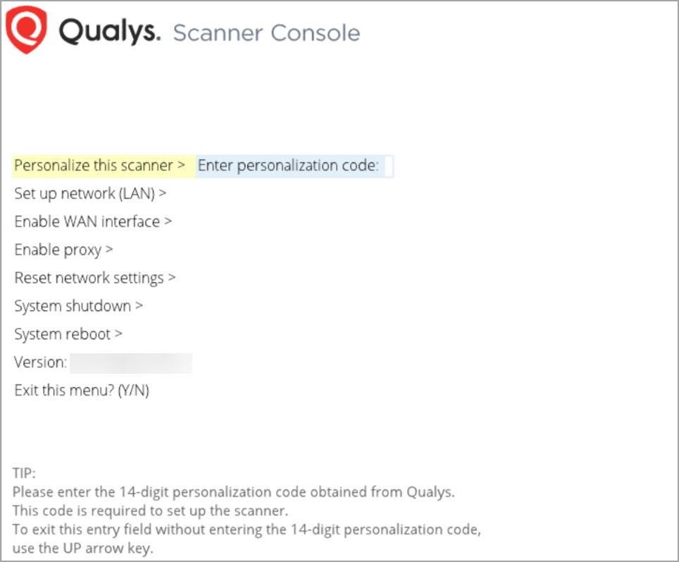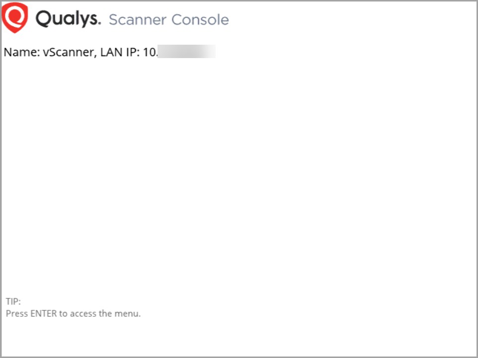 These steps apply when you have downloaded a scanner appliance image (for VMware, Citrix XenServer, and so on). You must use the Scanner Console running on your virtualization software to complete these steps.We automatically configure your virtual scanner with DHCP. If you want to use a static IP, then select Set up network (LAN) first. Refer to Configuration Settings.