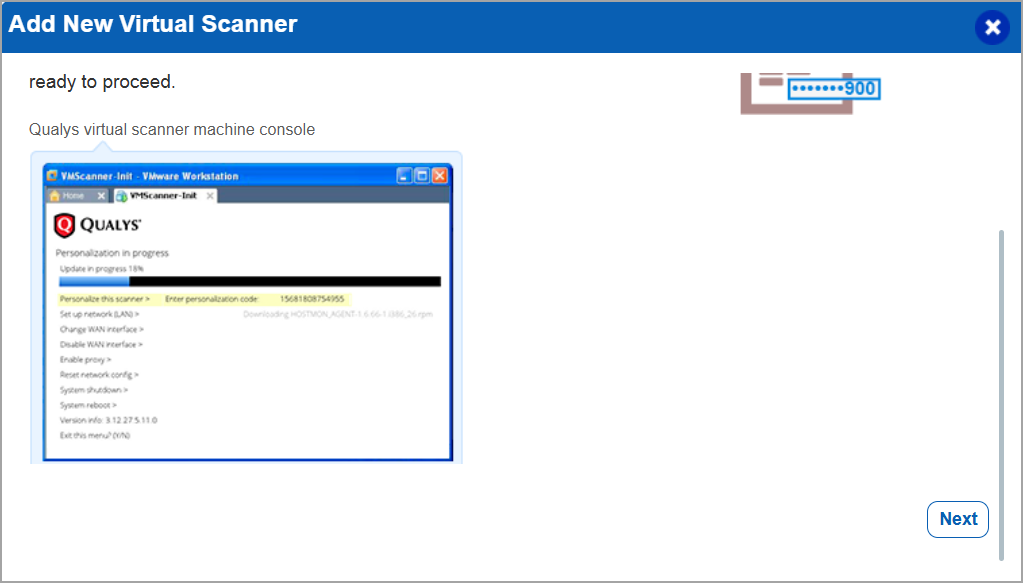 This is the first step for deploying Scanner. Add a new virtual scanner appliance to your account and obtain a personalization code.
