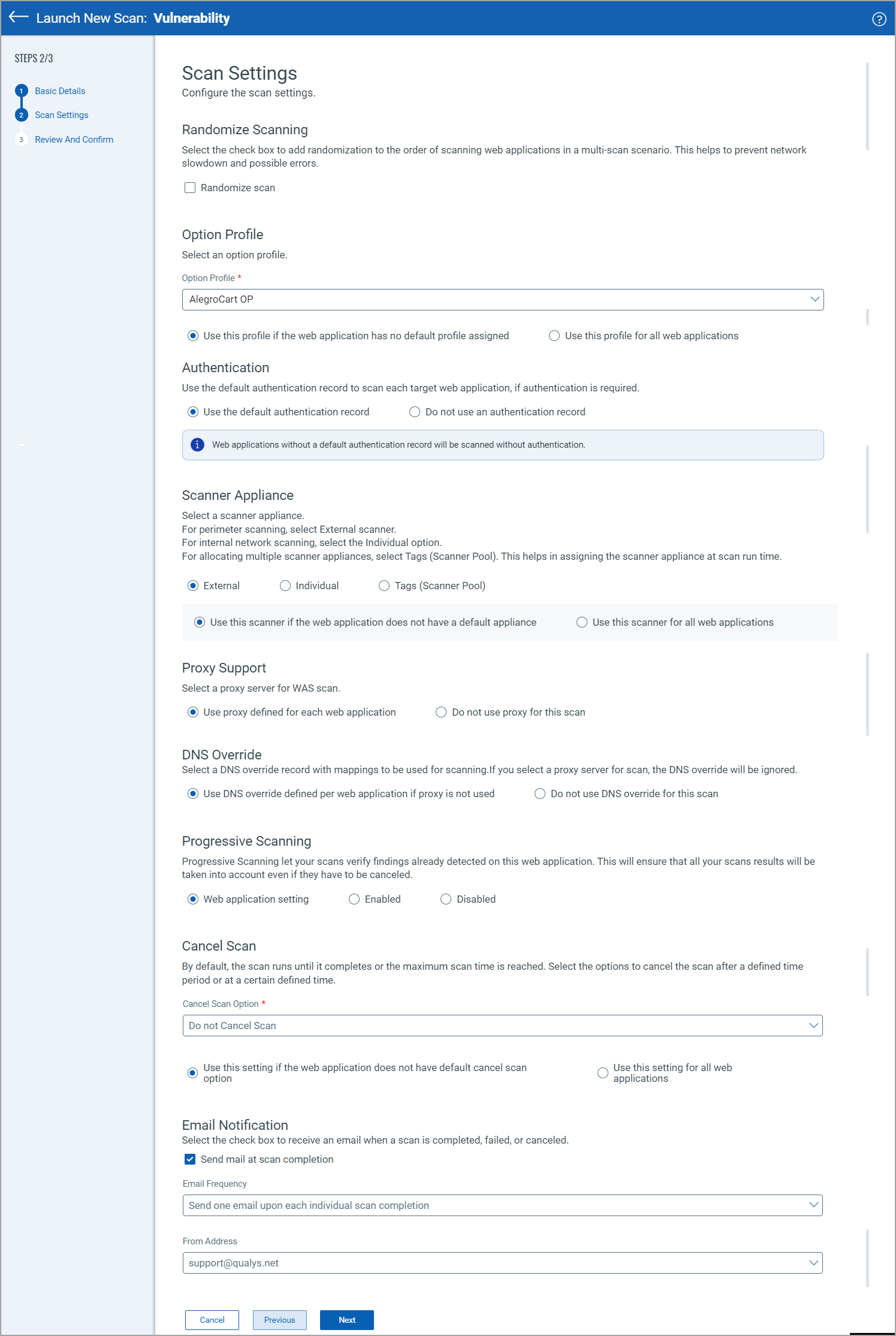 For details on scan settings in option profiles, see Option Profile - Scan Parameters