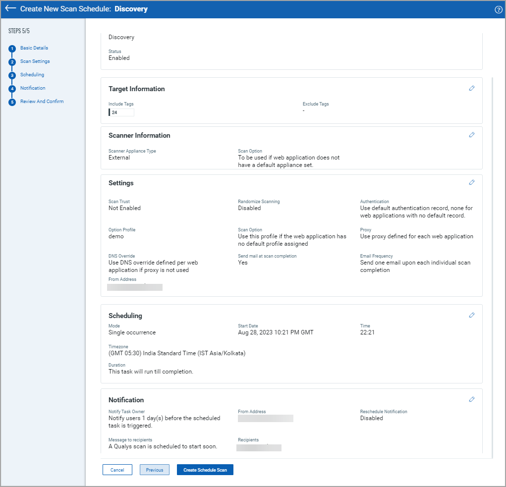 Review the settings and click Create Schedule Scan. The schedule is added to the Schedules list.