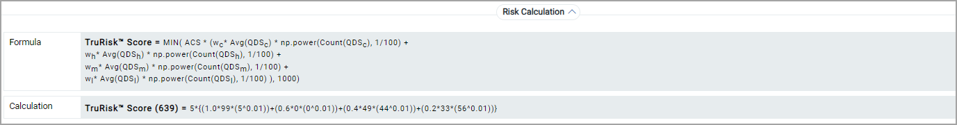 TruRisk™ Score is the overall risk score assigned to the asset based on the following contributing factors: