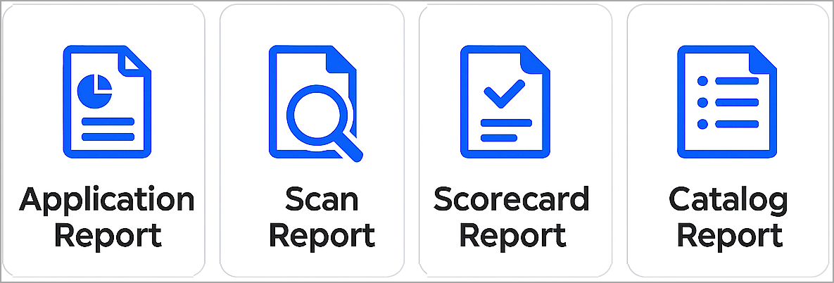 You can generate various reports tailored to your specific requirements - Web Application Report, Scan Report, Scorecard Report, or Catalog Report.