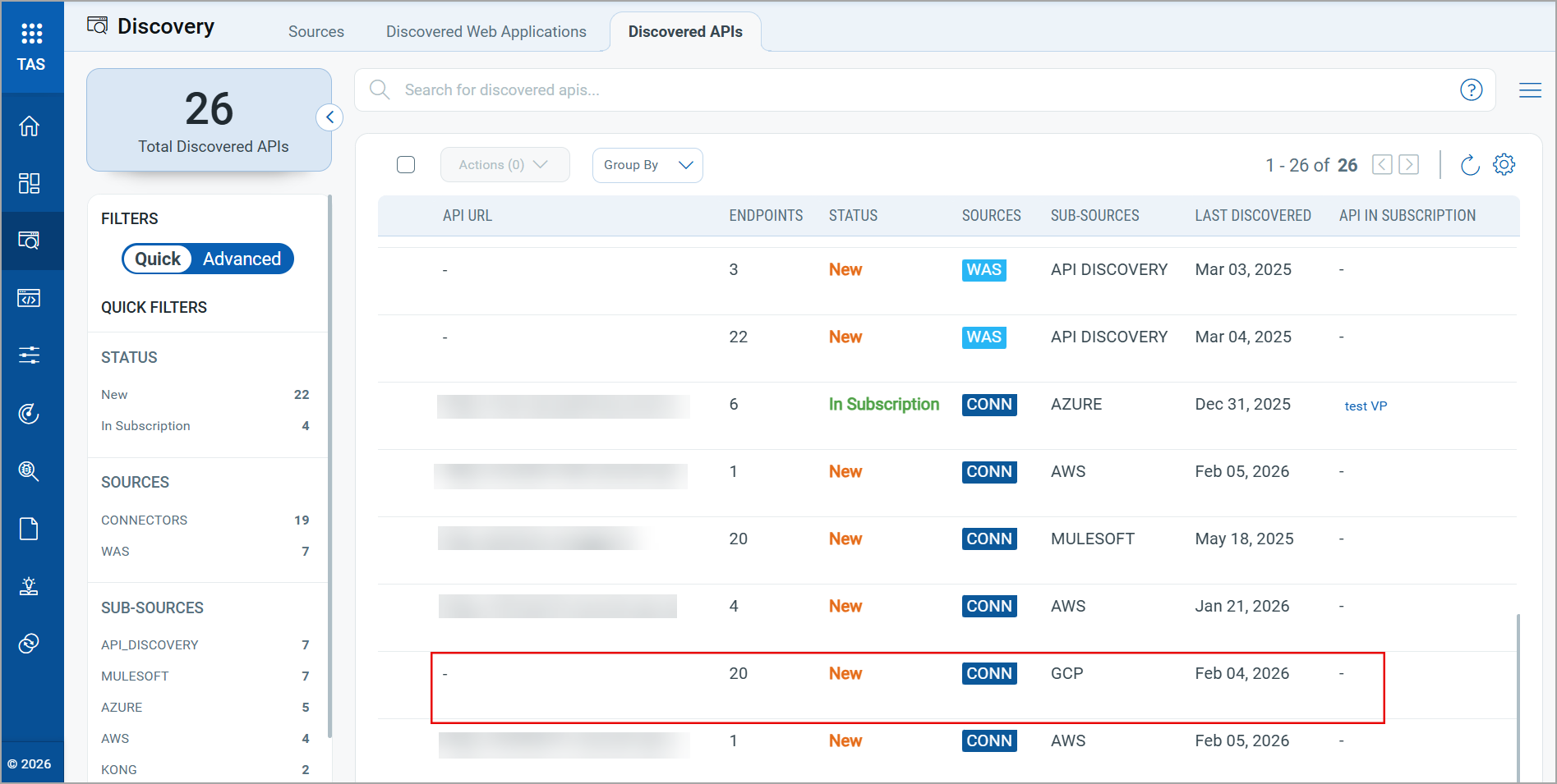 Here, you can view all API assets discovered by the GCP connector, along with additional details such as Status, URL, Endpoints, and so on.