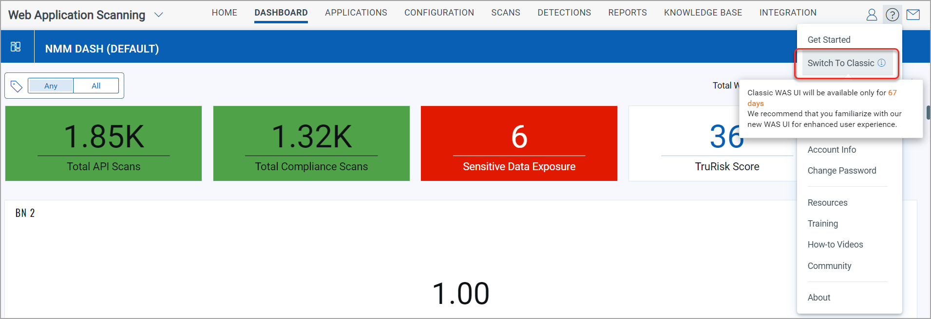 With this release, the option to switch to the classic WAS view is available in the Help options, as displayed in the following image: