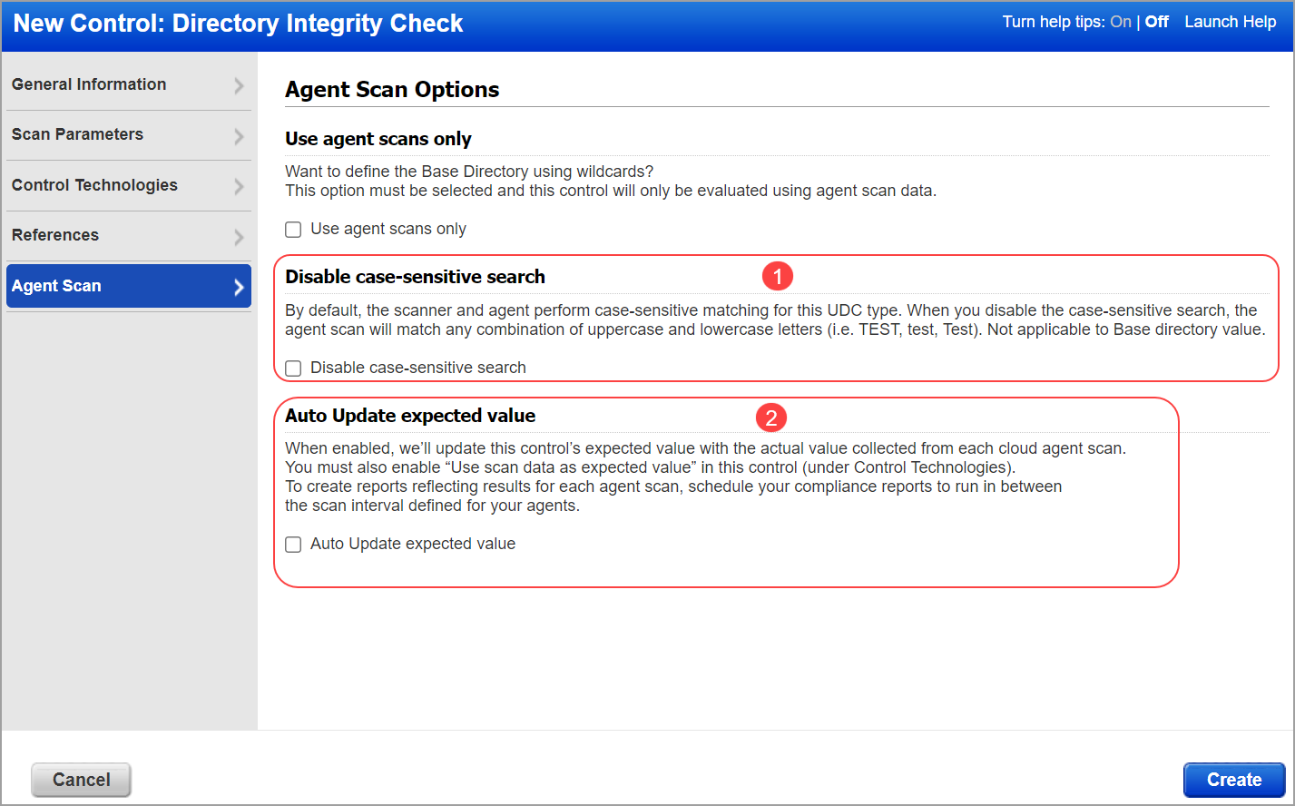 Directory Search Check and Directory Integrity Check - the "Use agent scans only" option lets you specify that the control is only evaluated using agent scans.