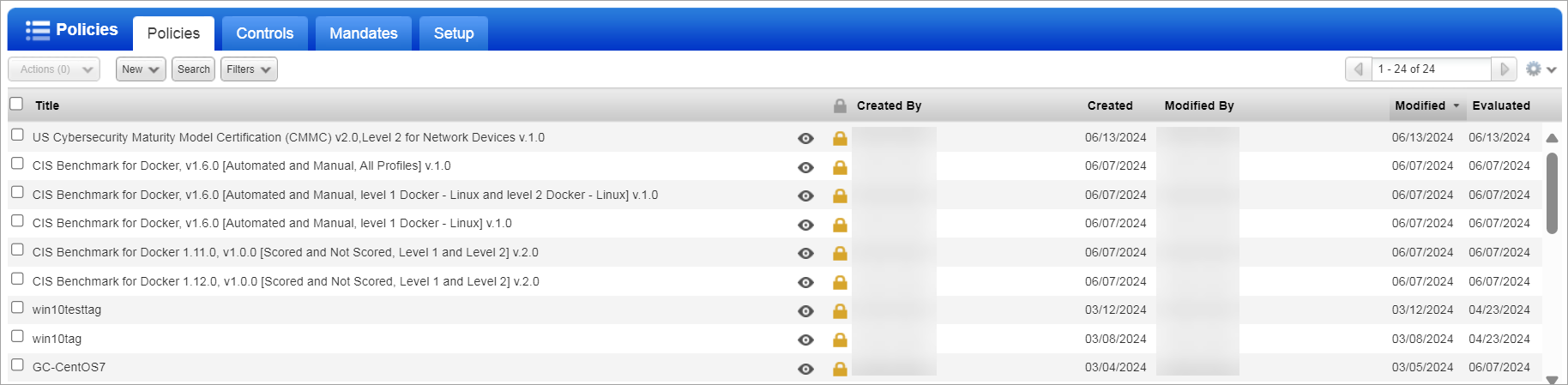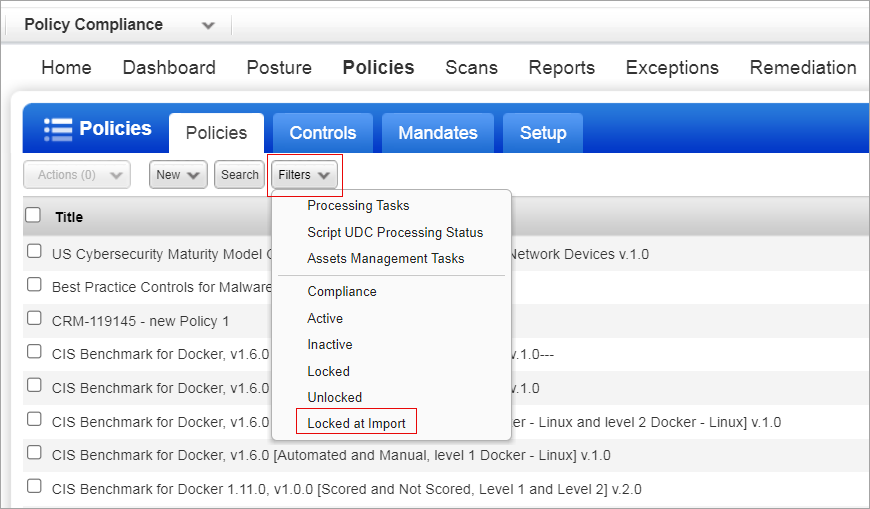 - Policies that are locked while importing and SCAP policies cannot be locked or unlocked.