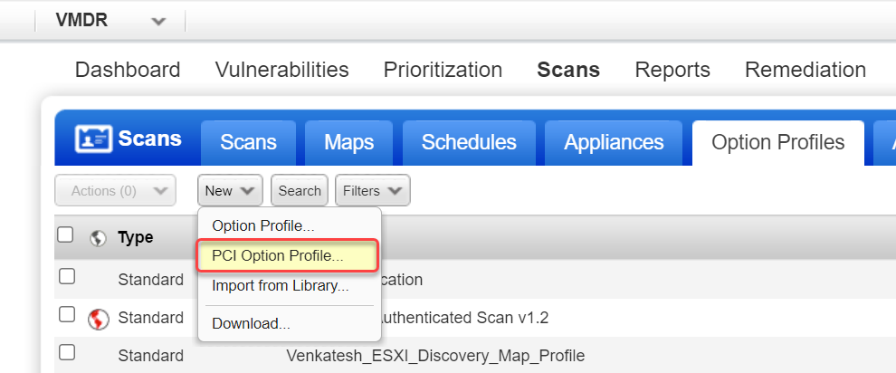 2a - To create a new PCI option profile, select New > PCI Option Profile.