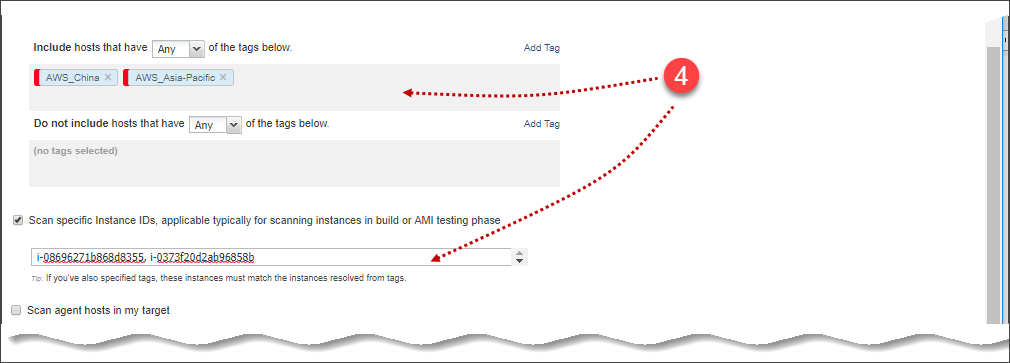 (4) Select asset tags to specify the EC2 hosts to be scanned. These are the assets activated for your connector.