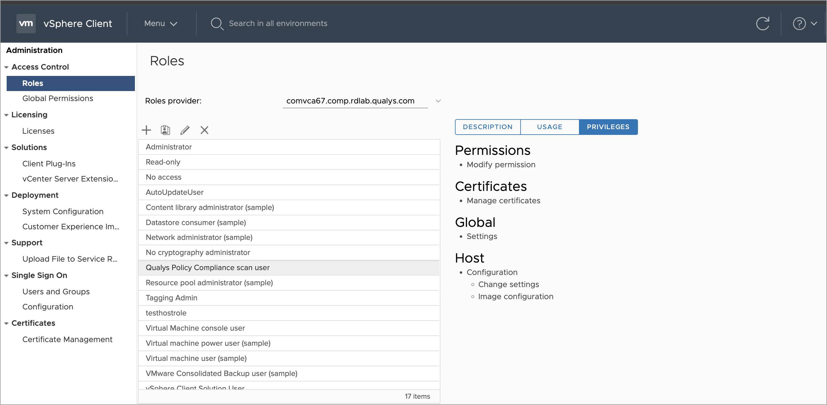 - Verify the newly configured role has the required privileges.
