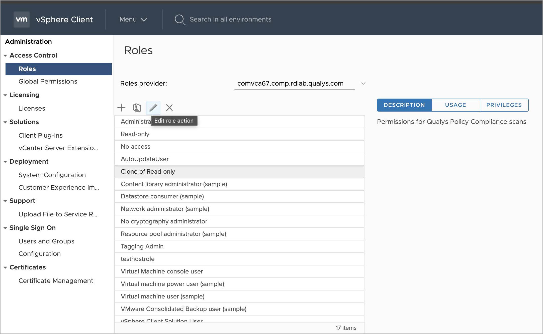 - Update the Role name to indicate the purpose of the role - Qualys Policy Audit