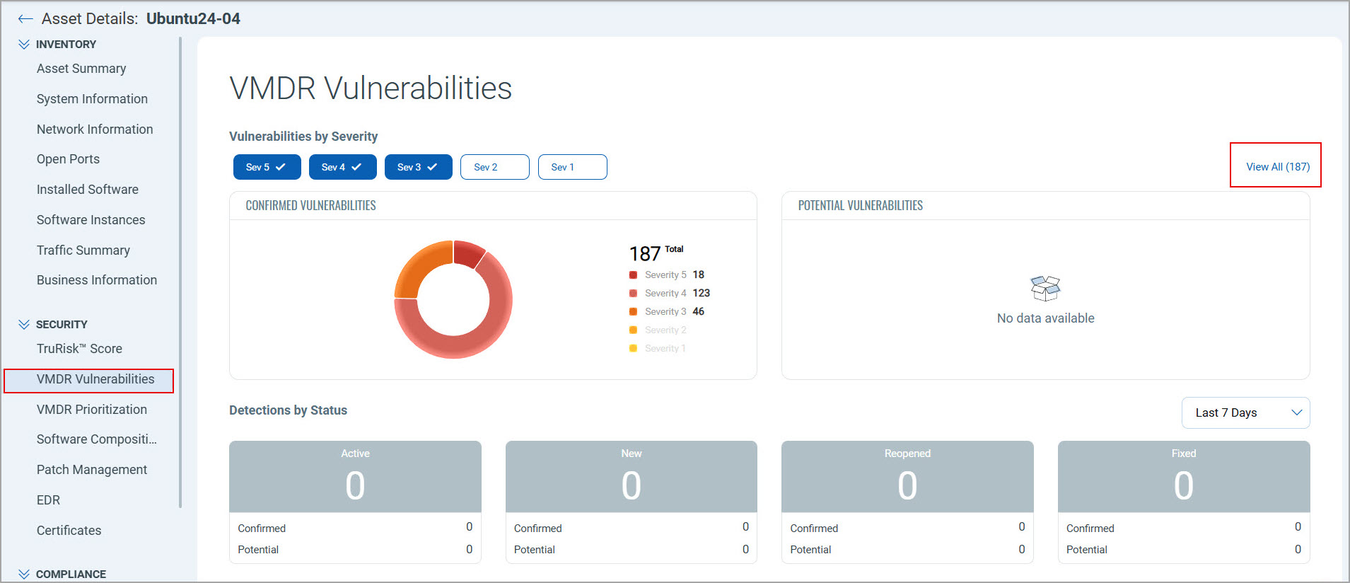 - Go to the Security section, click VMDR Vulnerabilities, and then click View All.