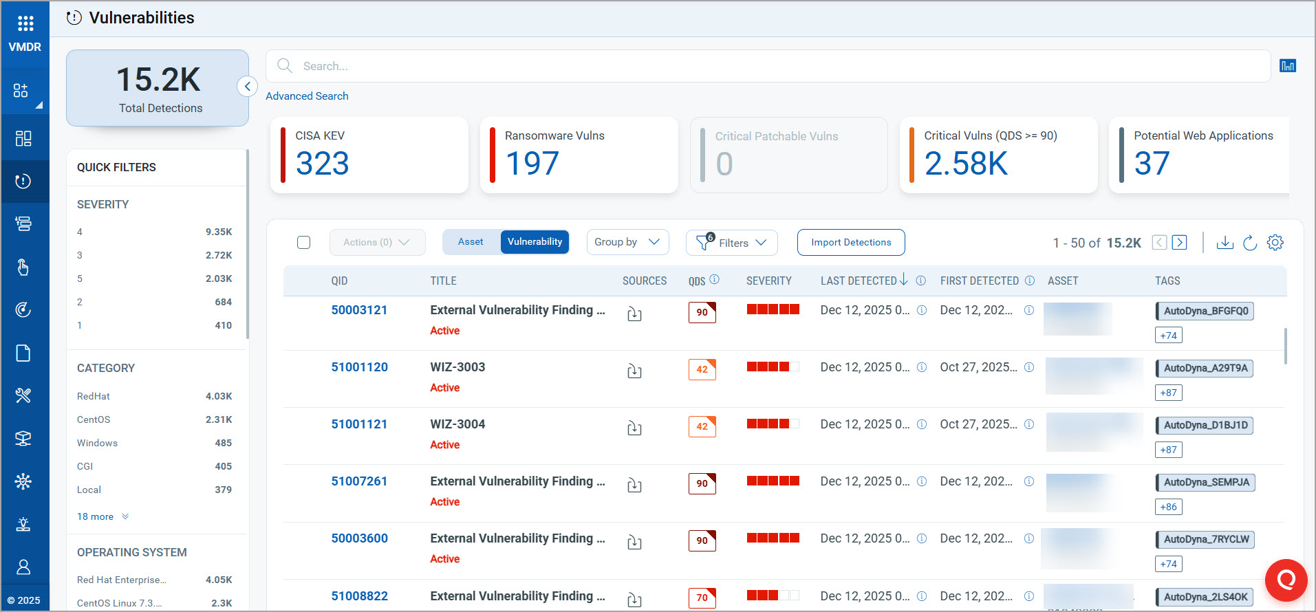 - In the left pane, under Security, click VMDR Vulnerabilities.